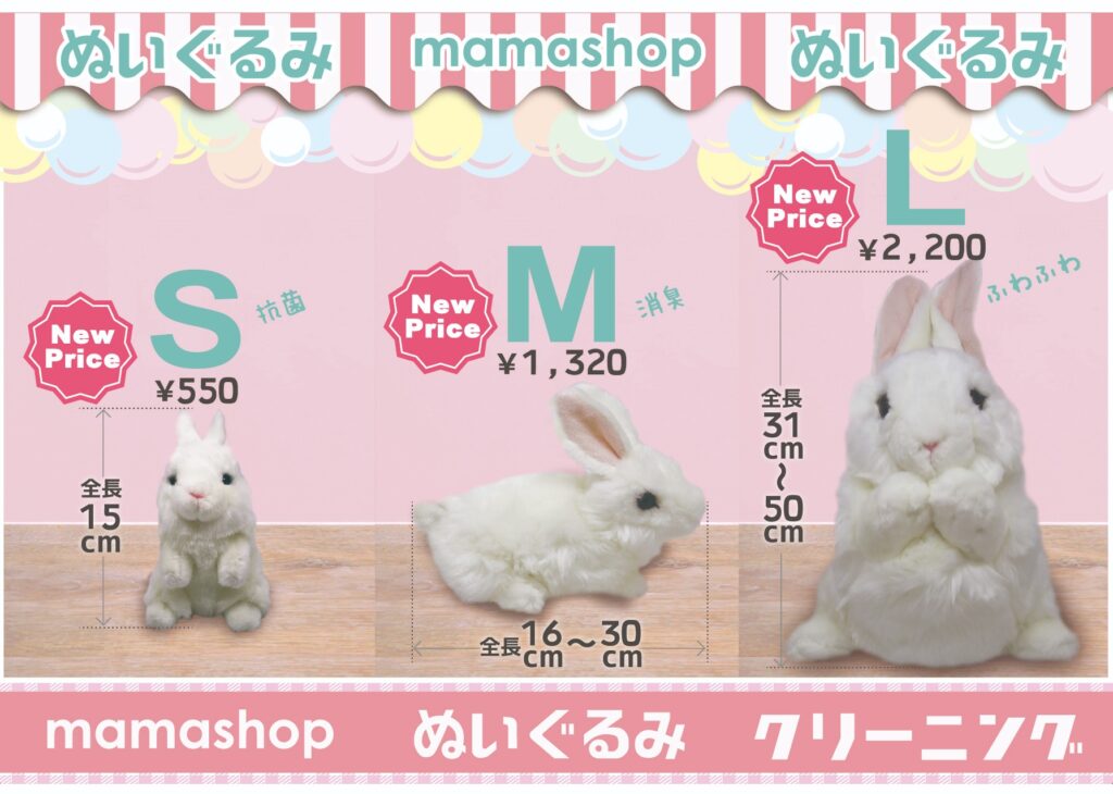 あなたやお子さまが大切にしているぬいぐるみ、一緒にいる時間が長いほどシミやほこり、手垢などによってついつい汚れてしまうものです。ママショップでは、ぬいぐるみの個性に合わせてひとつひとつ大切に手洗いしています。